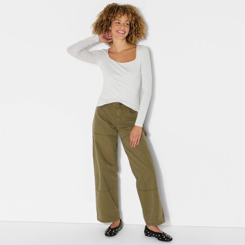 Jersey T-shirt from Wild Fable™ in a solid shade with a square neckline and long sleeves. Tailored in a fitted silhouette with a mid-length hem. Made from lightweight cotton with spandex for comfortab…