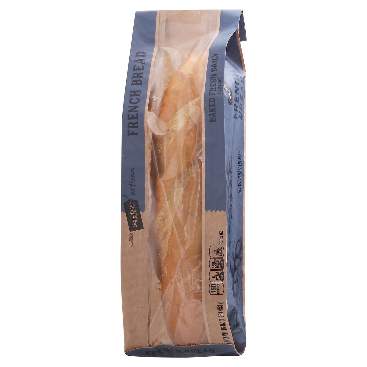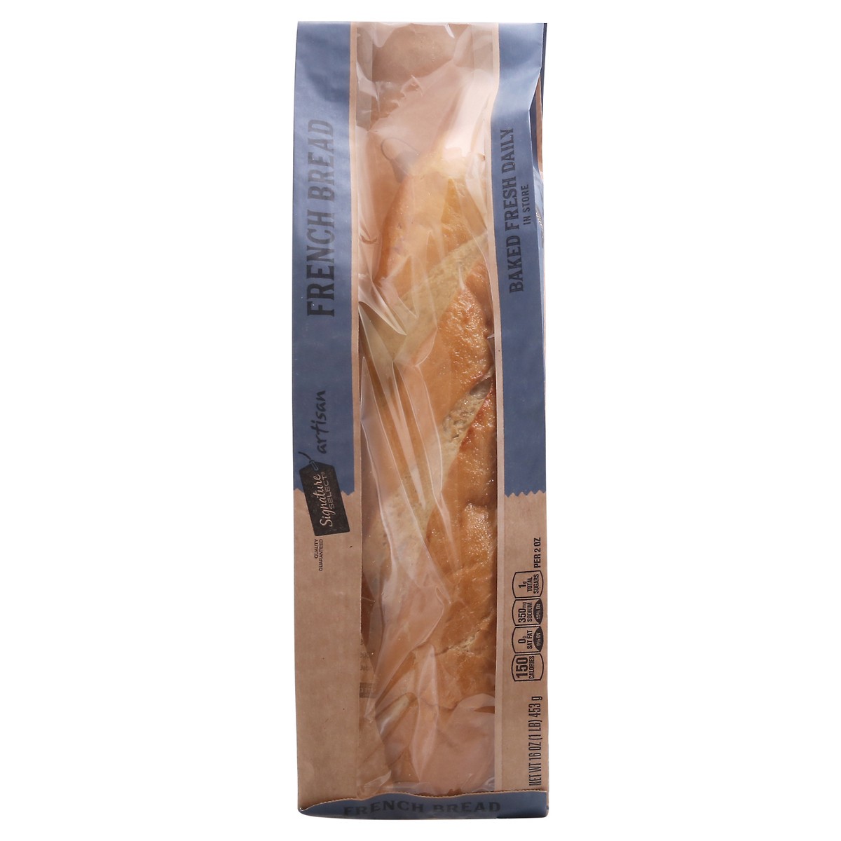 Per 2 oz: 150 calories; 0 g sat fat (0% DV); 350 mg sodium (15% DV); 1 g total sugars. Baked fresh daily in store. Our signature is our promise. Our signature select artisan breads are made from premi…