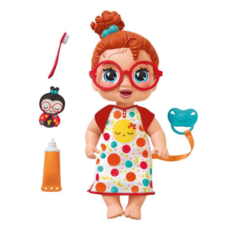 Goodnight, little Dottie Doodle! Play pretend sleepover anytime with this adorable 11 inch/28 centimeter baby doll set. Give Dottie Doodle her pacifier to shut her eyes and pull the pacifier away to o…