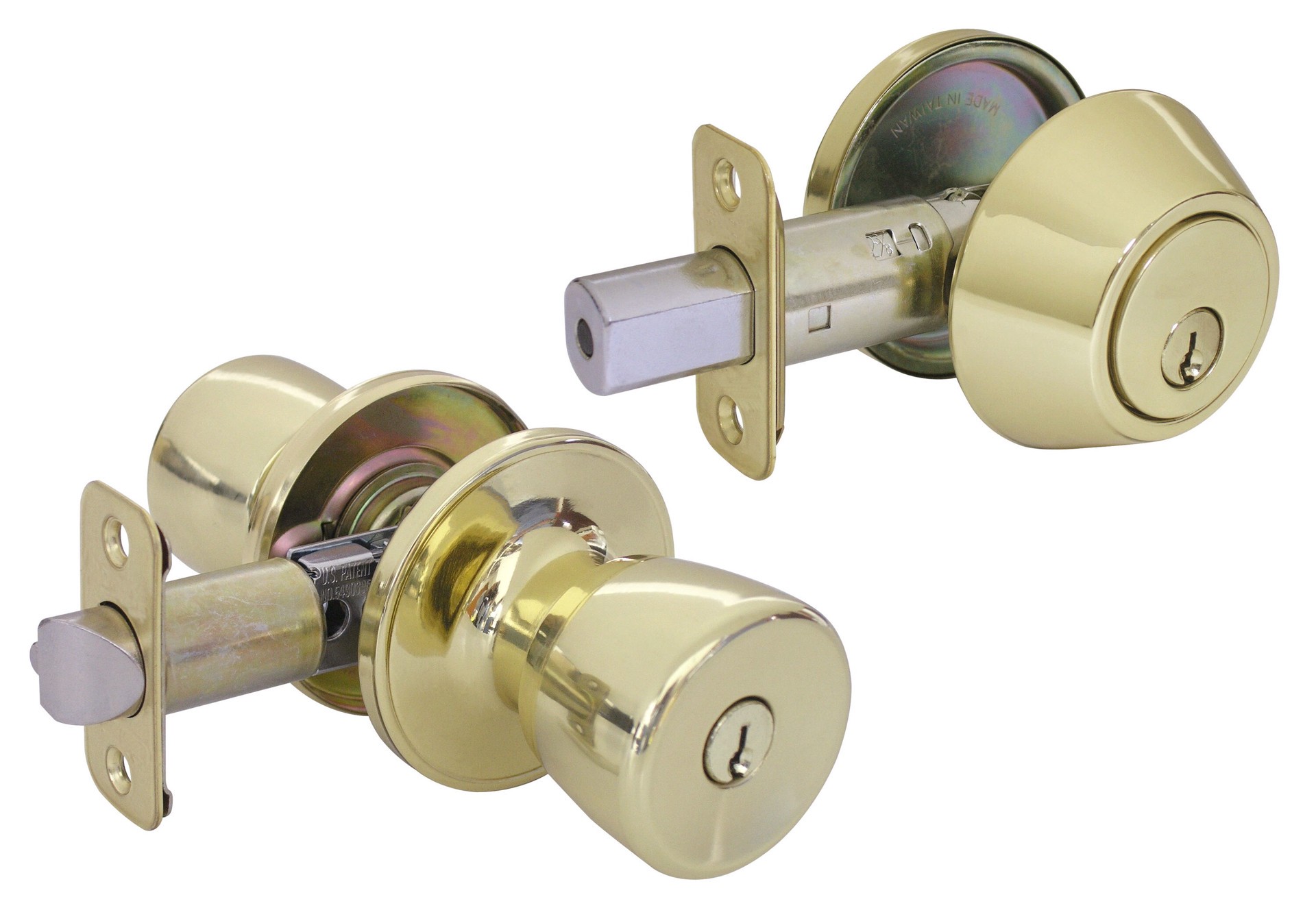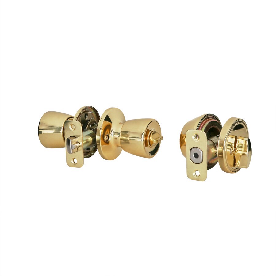 Gatehouse Gallo Polished Brass Exterior Single-Cylinder Deadbolt and Keyed Entry Door Knob Combo Pack