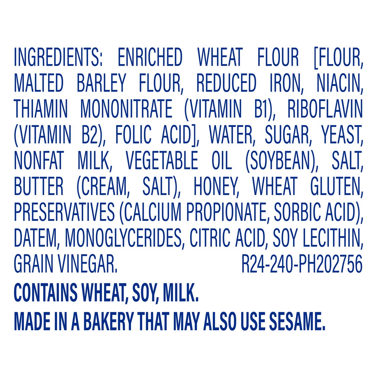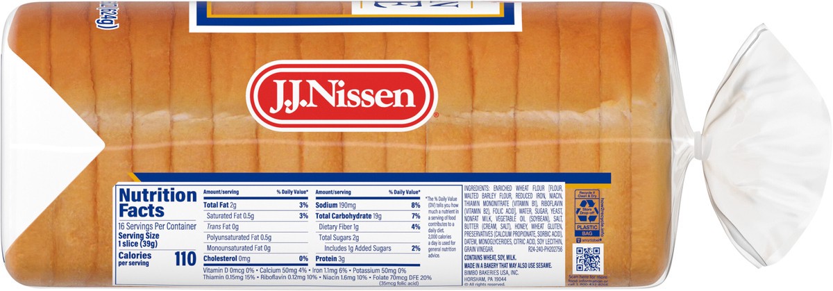 Enriched Wheat Flour [Flour, Malted Barley Flour, Reduced Iron, Niacin, Thiamin Mononitrate (Vitamin B1), Riboflavin (Vitamin B2), Folic Acid], Water, Sugar, Yeast, Nonfat Milk, Vegetable Oil (Soybean…