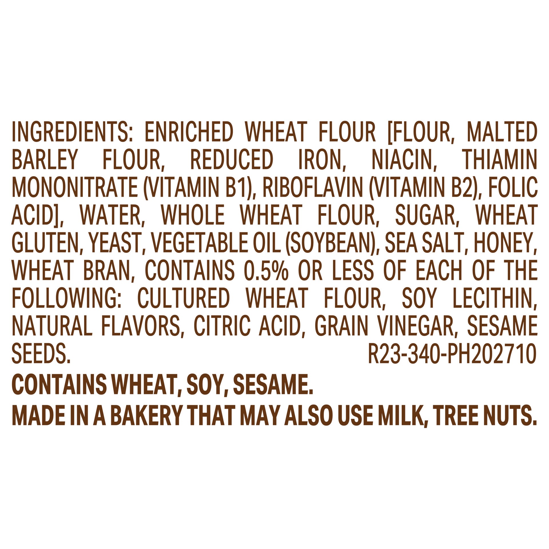 Enriched Wheat Flour [Flour, Malted Barley Flour, Reduced Iron, Niacin, Thiamin Mononitrate (Vitamin B1), Riboflavin (Vitamin B2), Folic Acid], Water, Whole Wheat Flour, Sugar, Wheat Gluten, Yeast, Ve…