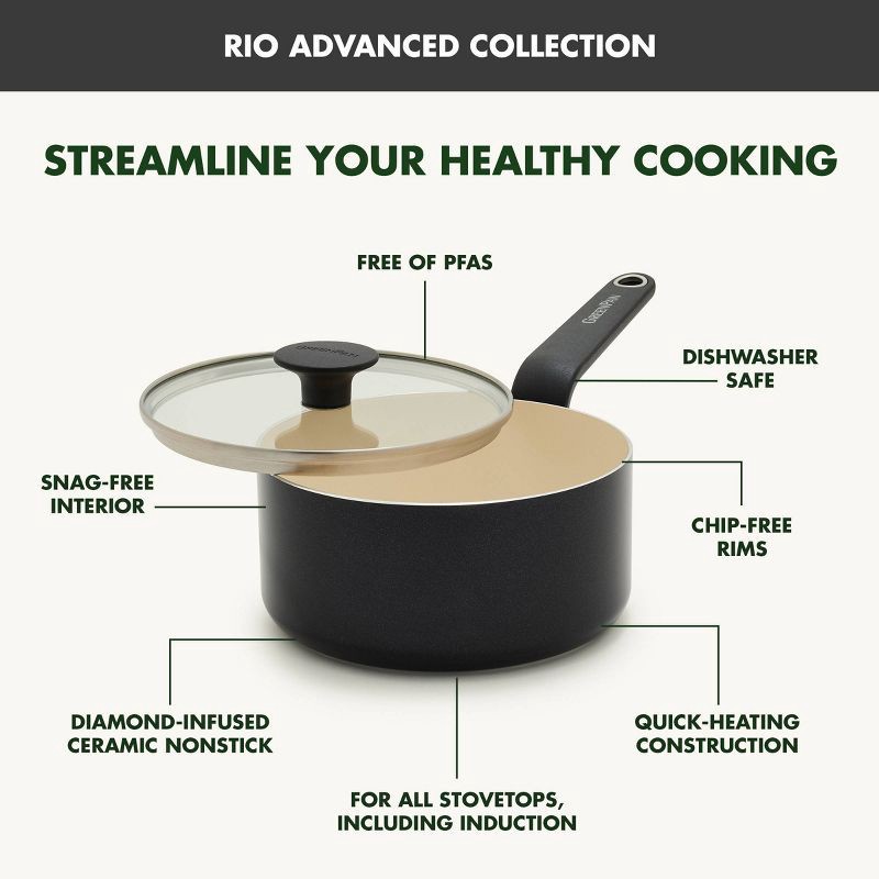 GreenPan Rio Advanced 2qt Ceramic Nonstick Sauce Pan with Lid Black