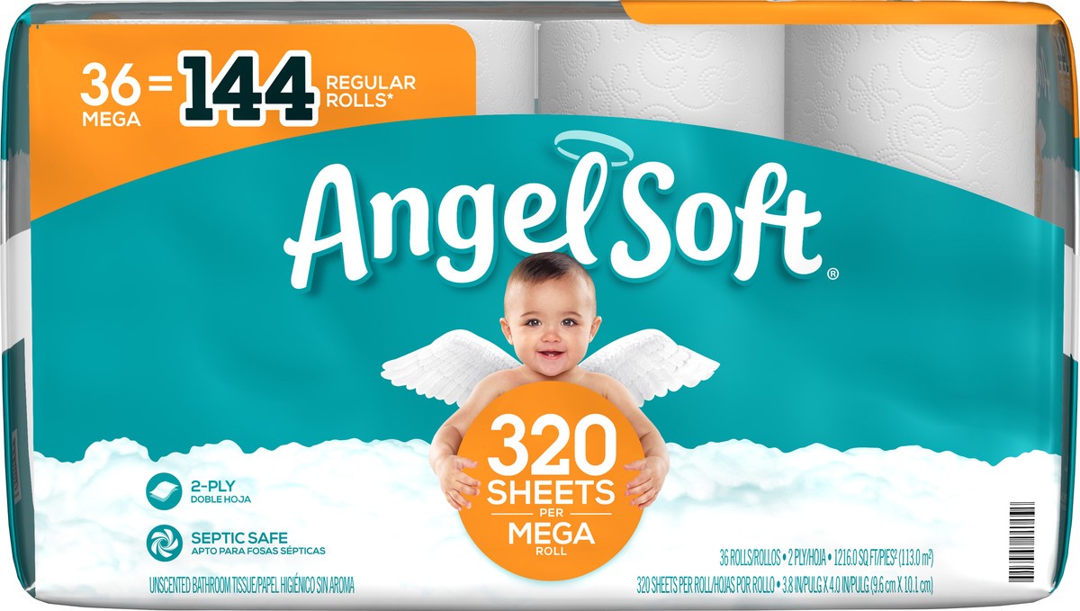 Here''s something to harp on—Angel Soft Mega Rolls last and last with rolls that are 4 times as big as our Regular Rolls. With 320 2-ply sheets on every Mega Roll, you''ll always have plenty of the so…