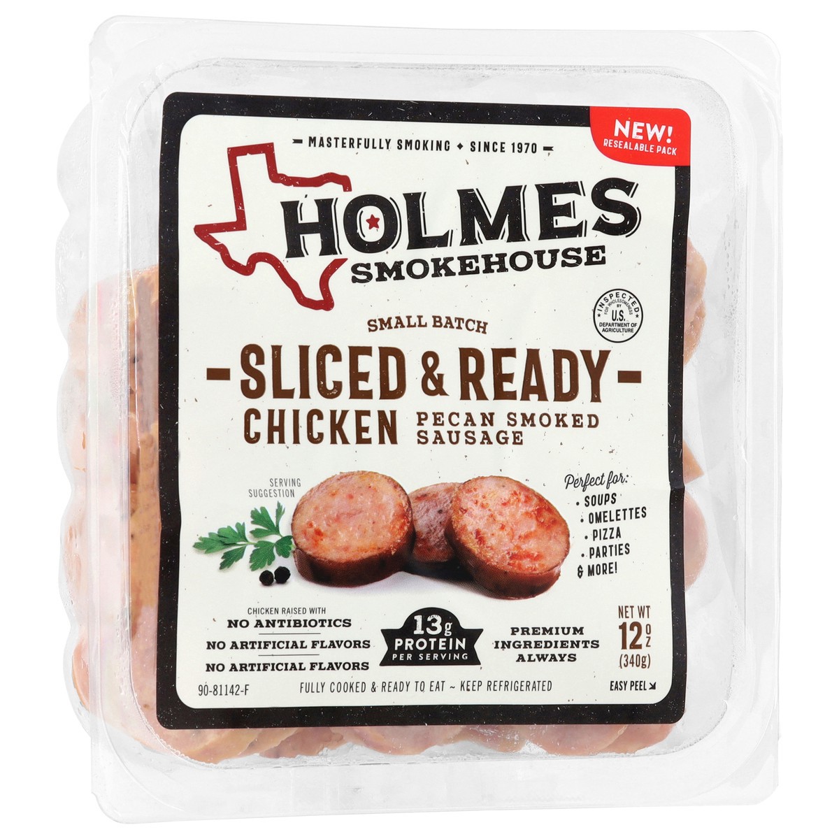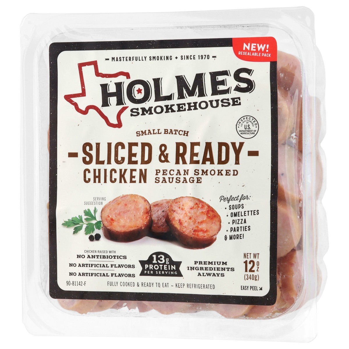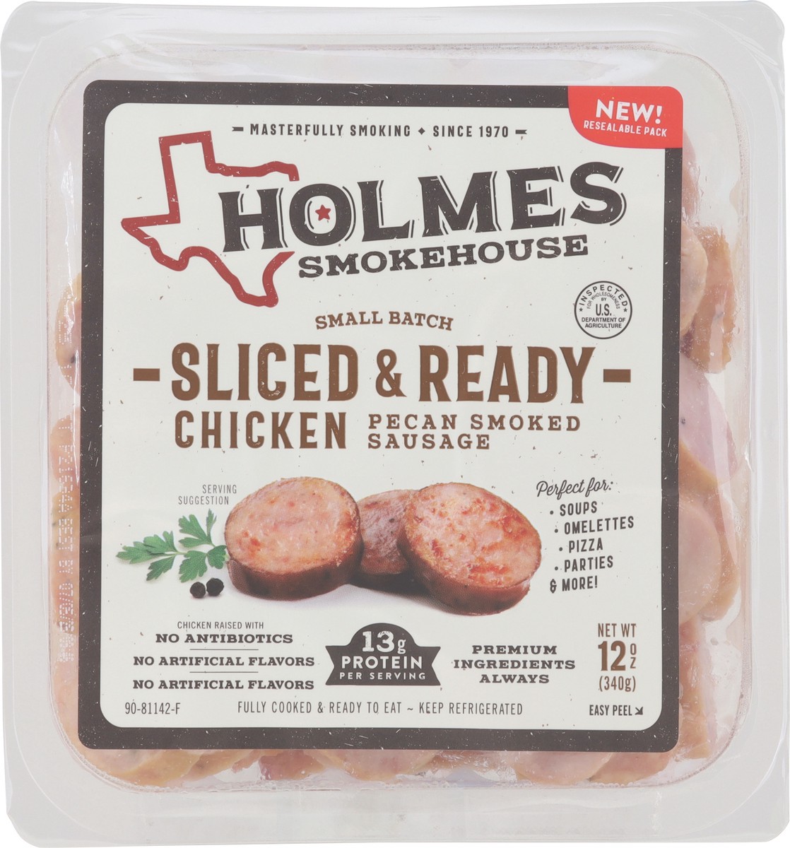 Holmes Smokehouse Small Batch Sliced & Ready Pecan Smoked Chicken Sausage 12 oz
