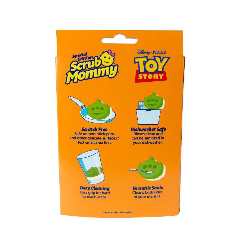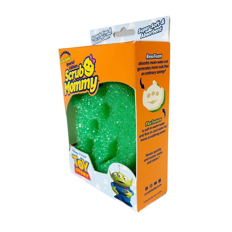 - 1-PACK: One dual-sided original Scrub Mommy Toy Story Alien cleaning sponge, with a firm scrubber on one side for tough messes and a soft, absorbent side for gentle cleaning