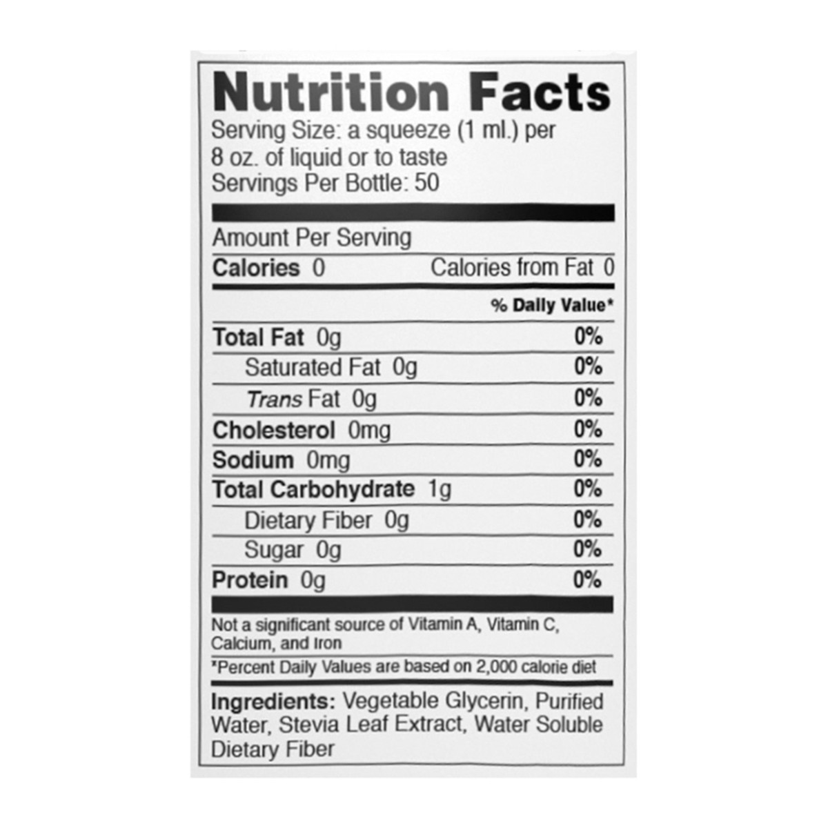 Vegetable Glycerin, Purified Water, Stevia Leaf Extract, Water Soluble Dietary Fiber.