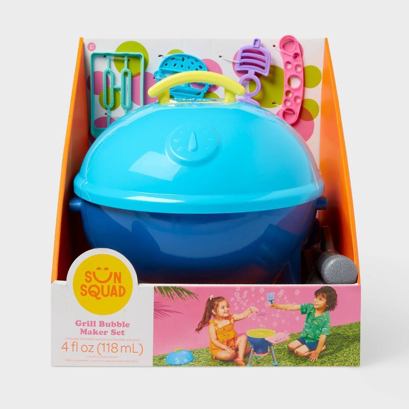 Dive into fun with the playful Themed Bubble Role Play Grill from Sun Squad™ for endless bubble-blowing action. This durable grill-shaped device holds up to 4 ounces of liquid and comes with an includ…