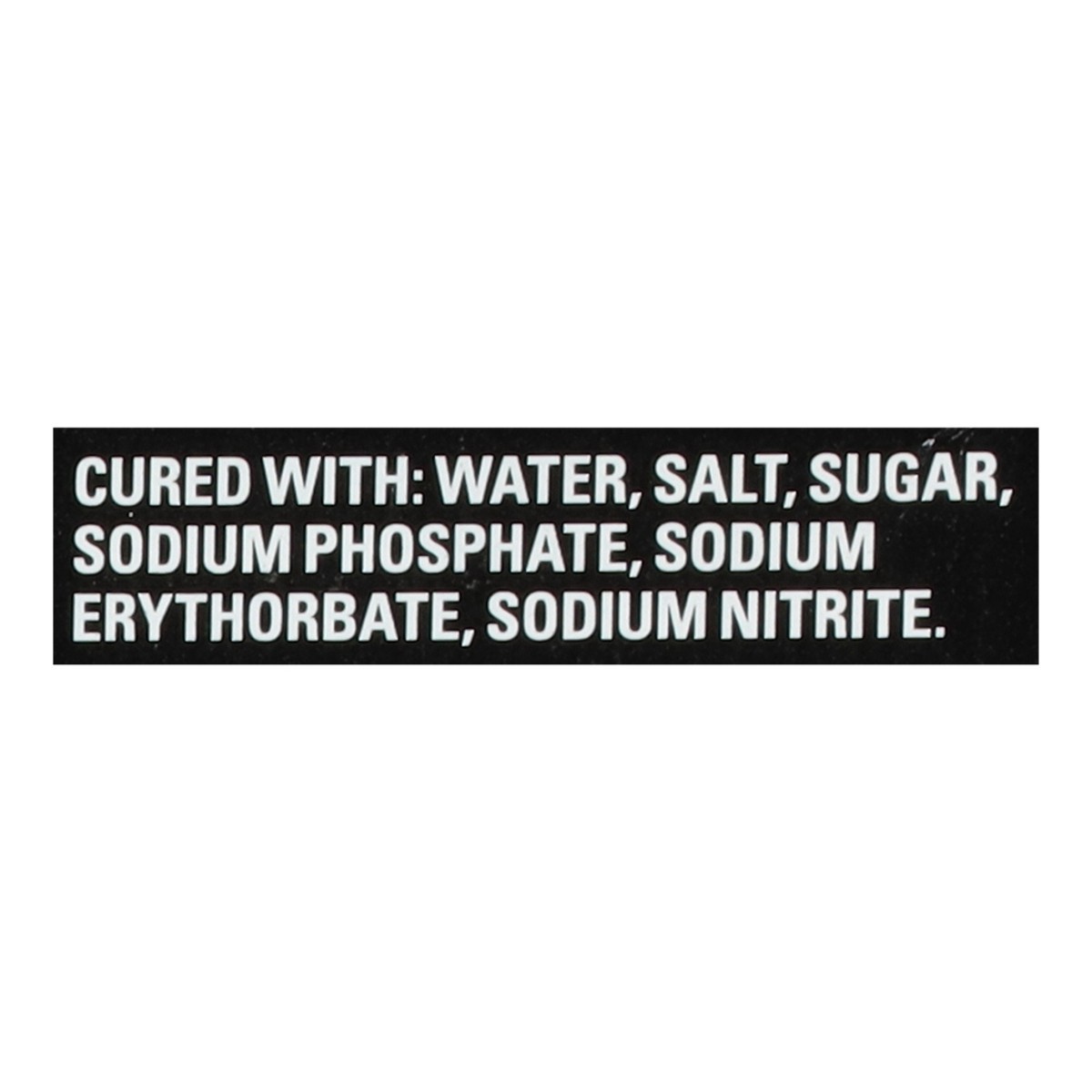 Cured with: Water, Salt, Sugar, Sodium Phosphate, Sodium Erythorbate, Sodium Nitrite.
