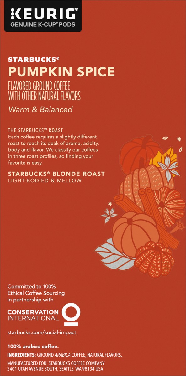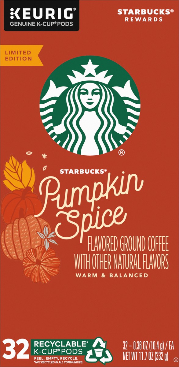 Starbucks 100% Arabica Naturally Flavored Pumpkin Spice K Cup Coffee Pods Box 32 Count - Each