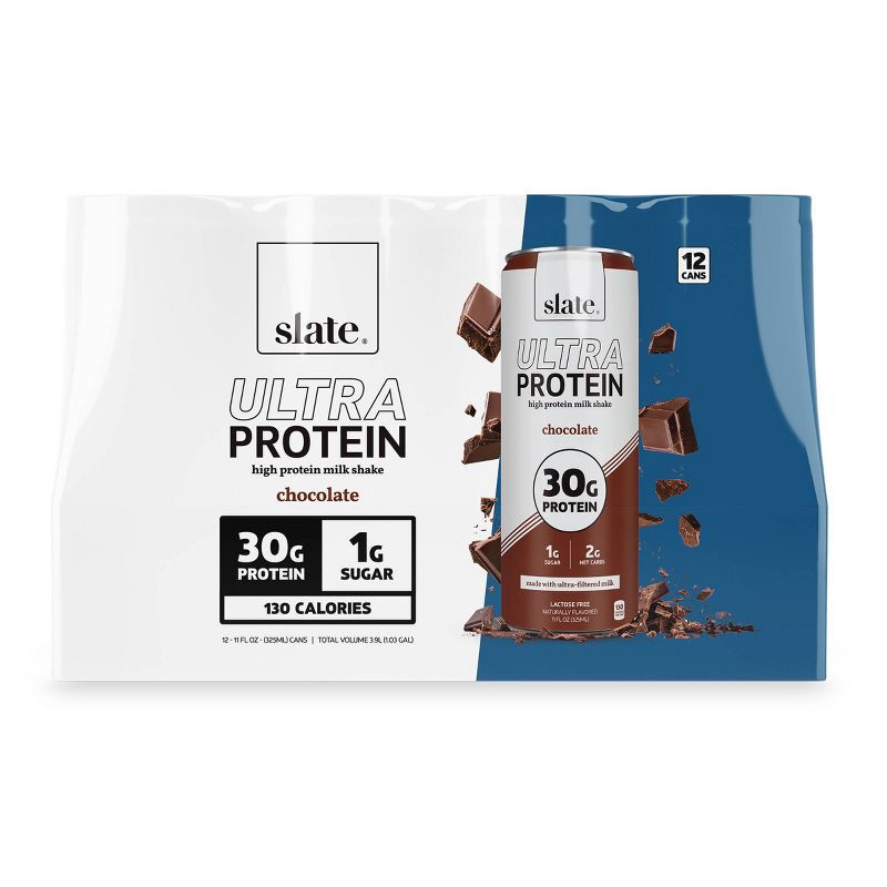 Slate's ultra chocolate protein milk shake is smooth, creamy, and delicious. With 30g of muscle building protein from real ultra-filtered milk and only 1g of sugar, it gives you the fuel you need. Pac…