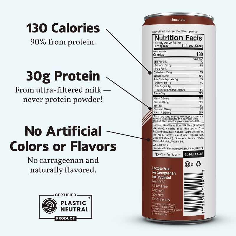 - 30g protein: the protein in our drinks comes from real, lactose free, ultra-filtered milk, no added protein powder