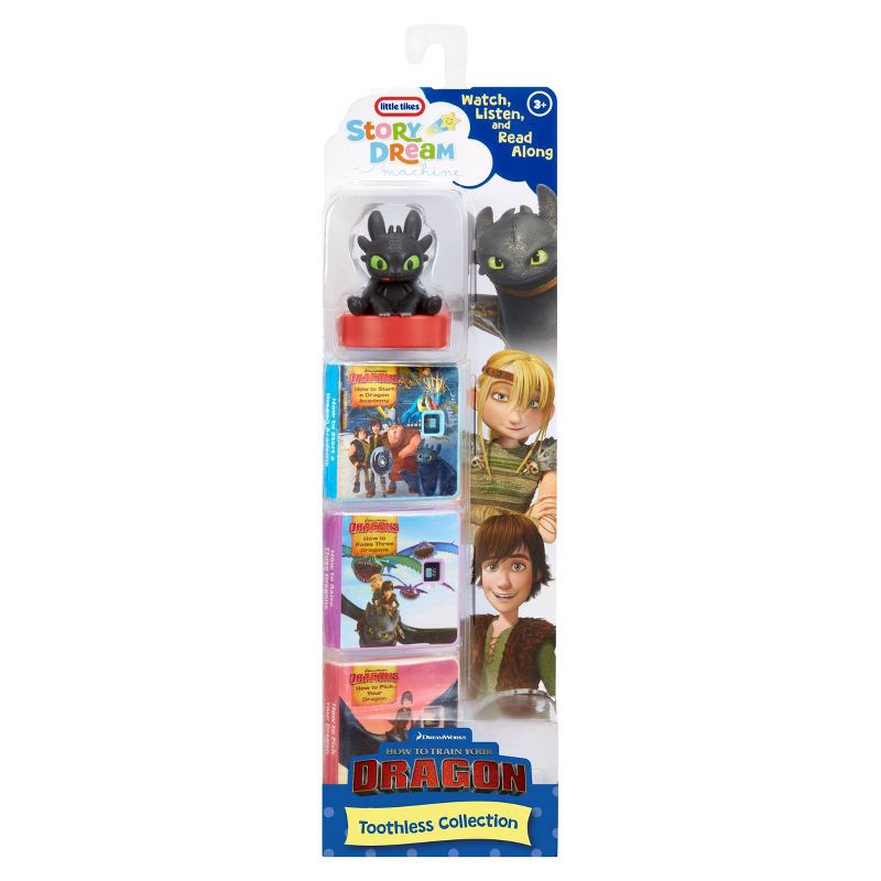 DreamWorks How To Train Your Dragon Toothless Collection for the Little Tikes® Story Dream Machine™ includes 3 stories and 1 character that adds light effects in nightlight mode. The Story Dream Machi…