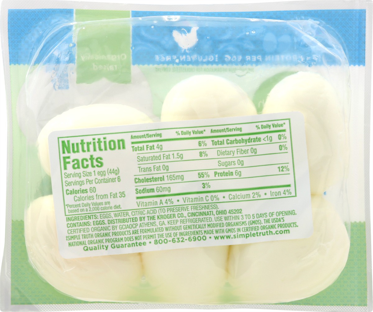 6 g protein per egg. Gluten free. USDA Organic. Certified organic by GCIAOCP Athens, GA. See nutrition information for cholesterol content. Non GMO (Simple Truth Organic products are formulated withou…