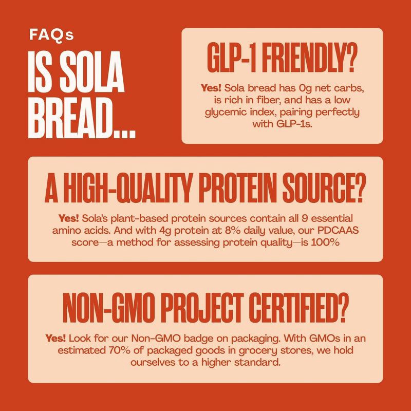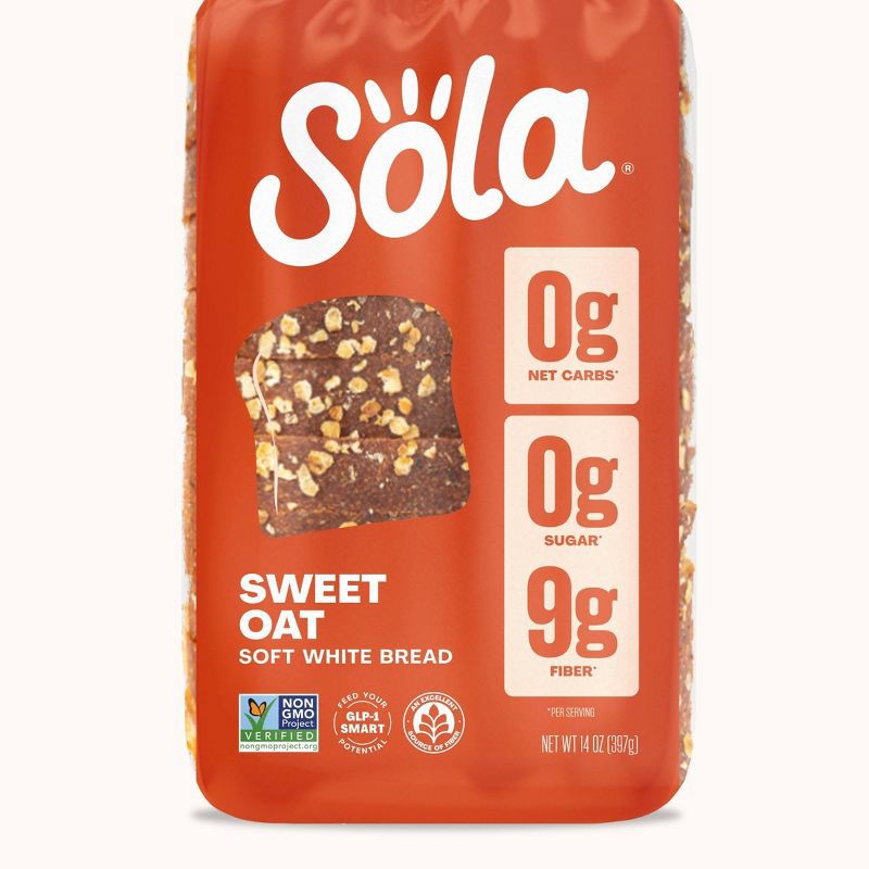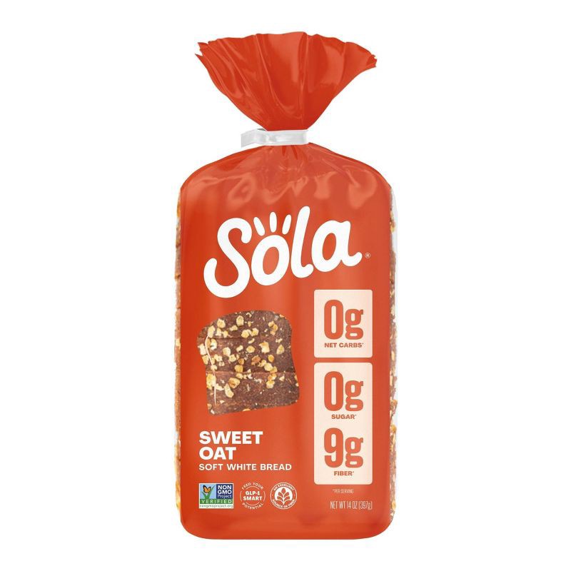 Experience a hearty taste and a hint of sweetness with Sola Sweet Oat Bread. Each slice is packed with 9g fiber, 4g complete protein, and 0g net carbs. Topped with slightly sweet rolled oats, this low…