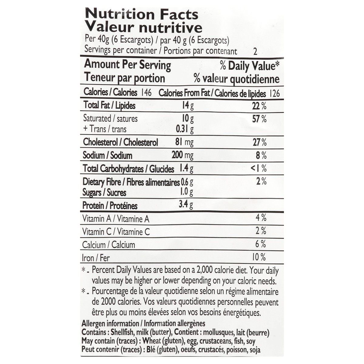 Snails (Mollusc), Butter (Milk), Garlic, Parsley, Shallot, Salt, Pepper, Spices, Celery.