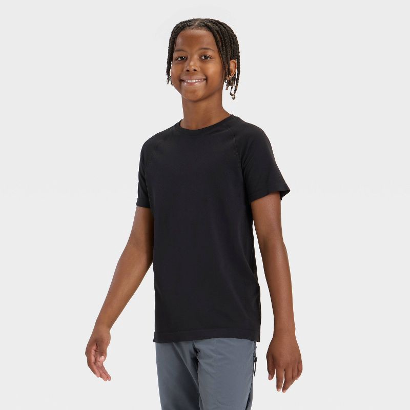 Why we're ALL IN:Round neck short-sleeve tee made from 100% nylon with 100% nylon lining. Features a seamless design with a length that hits below the waist. Designed with a round neckline, it feature…