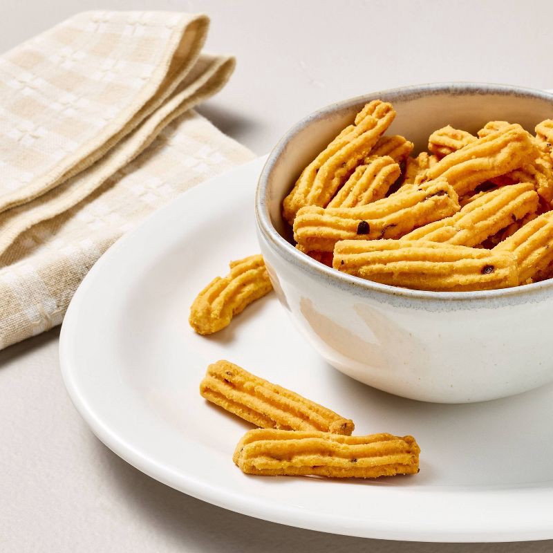 Cheese lovers of all ages are sure to enjoy these Spicy Pimento Cheese Straws from Hearth & Hand™ with Magnolia Table. Made with real cheese and cracked black pepper, these baked straws pack bold, che…