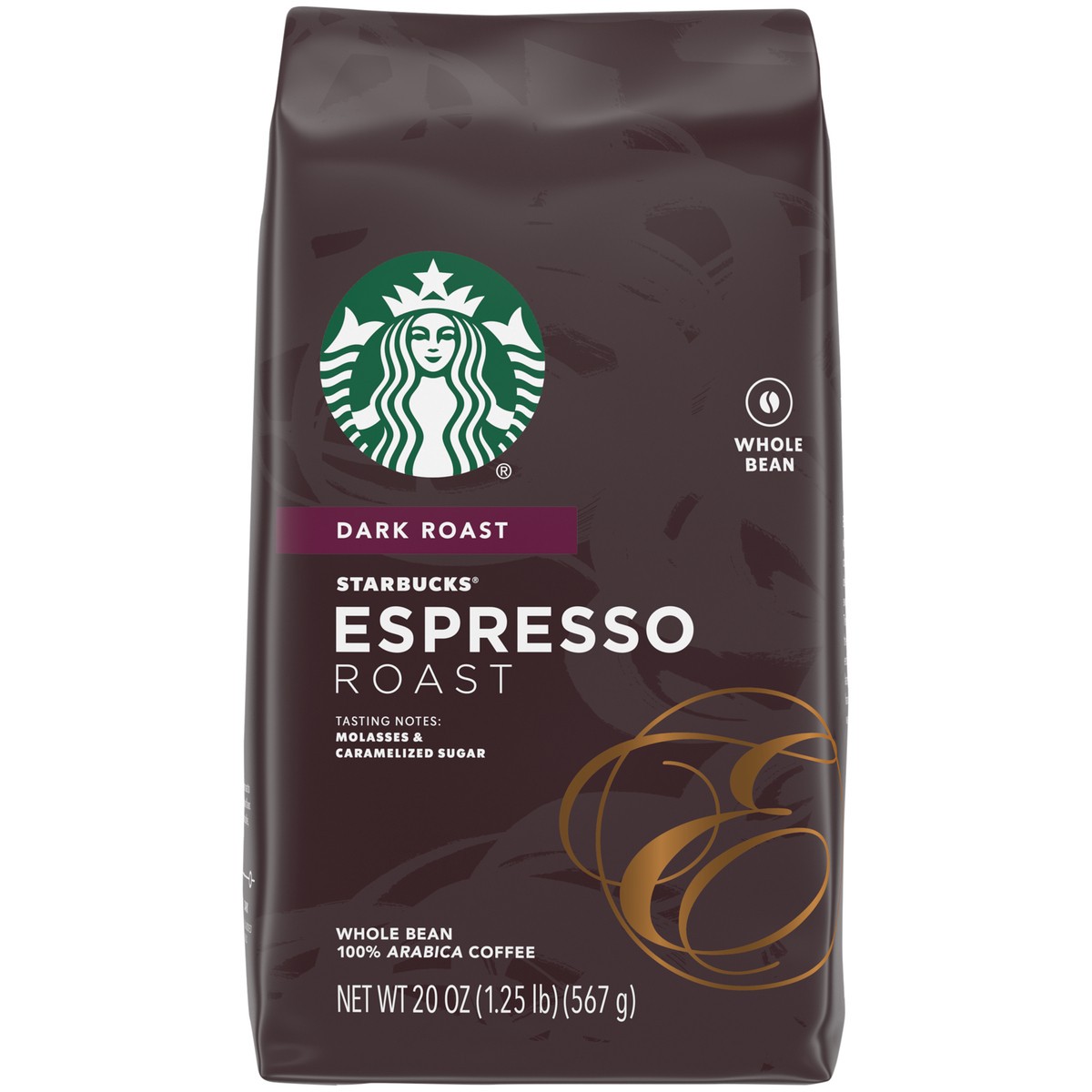 - PREMIUM WHOLE BEAN COFFEE—Starbucks delivers exceptional coffee cup after cup with this 20-ounce bag of Espresso Roast dark roast whole bean coffee