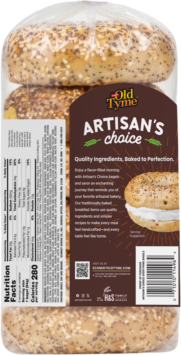 Old Tyme Artisan's Choice Everything Pre-Sliced Bagels - 6 ct