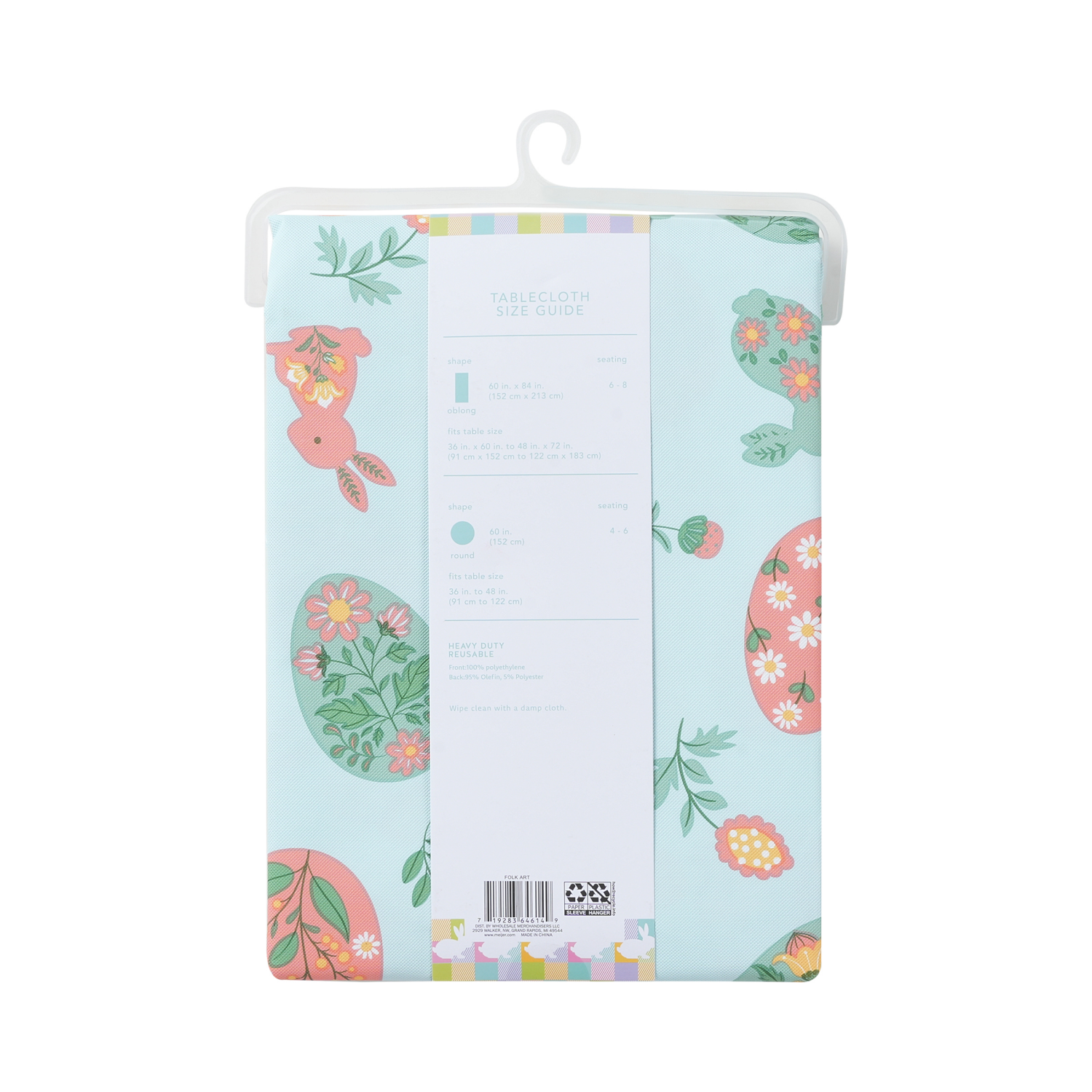 Meijer Corporate Seasonal Easter Folk Art PEVA Tablecloth, 60 in x 84 in
