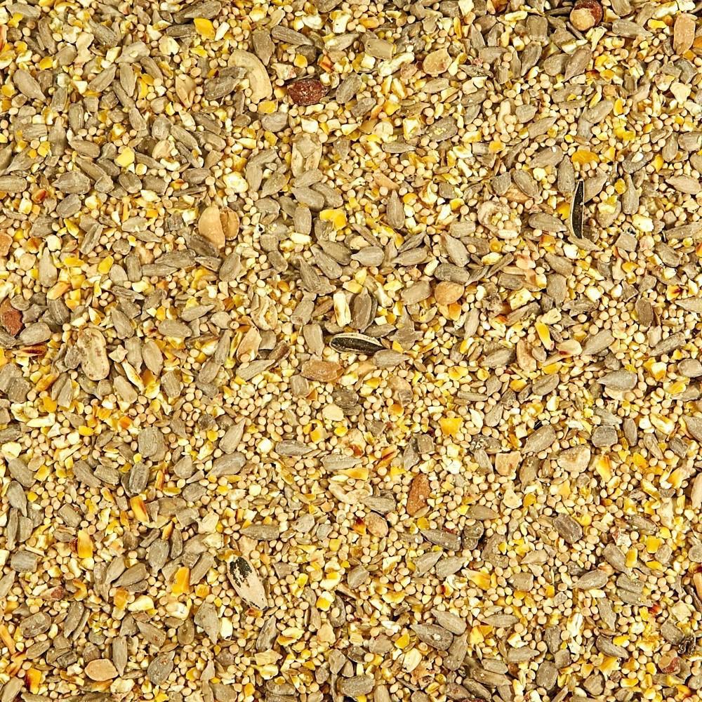 HULLED SUNFLOWER, MILLET, CRACKED CORN, PEANUTS, CANARY GRASS SEED, CALCIUM CARBONATE.