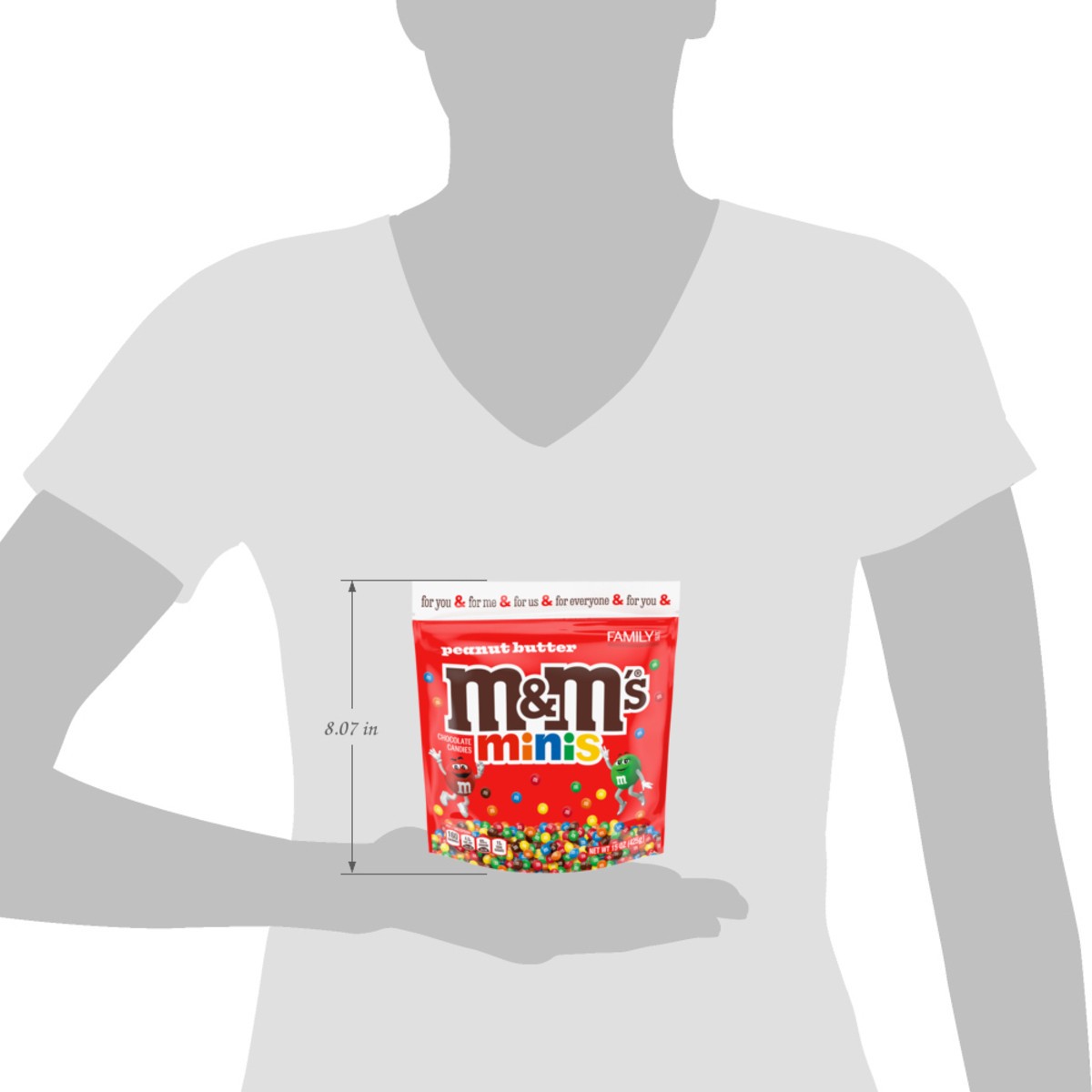 - Contains one (1) 15-ounce bag of M&M'S Minis Peanut Butter Milk Chocolate Family Size Bag Keep your pantry stocked with this bulk resealable bag of M&M'S Minis Candy to grab for any occasion Add a delightful and colorful twist to your favorite cookie or brownie recipe with M&M'S MinisUpgrade your ice cream sundae by generously topping it with M&M'S Minis Peanut Butter candyFrom road trips to study sessions