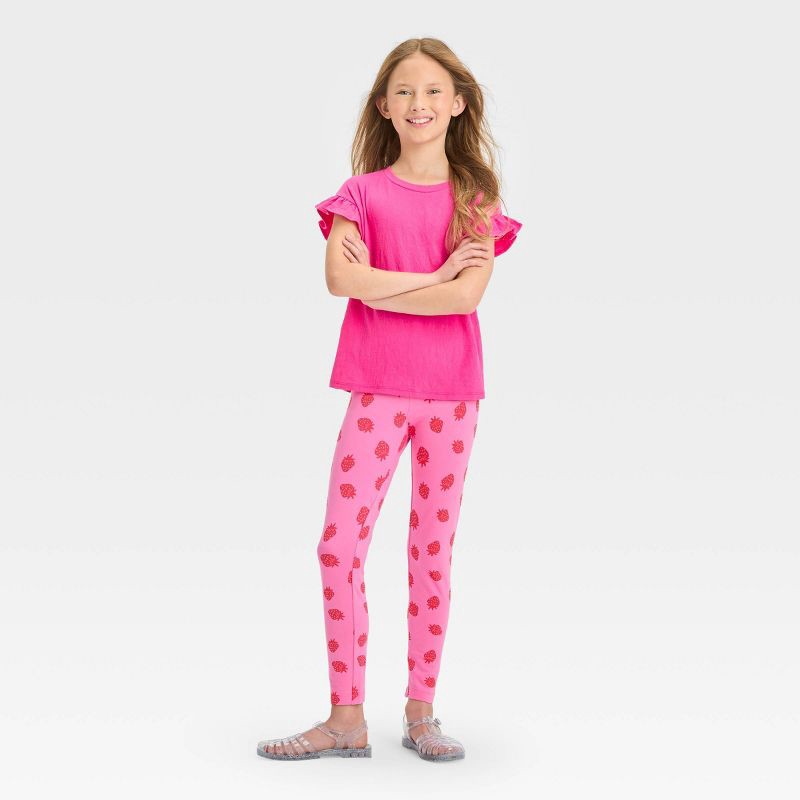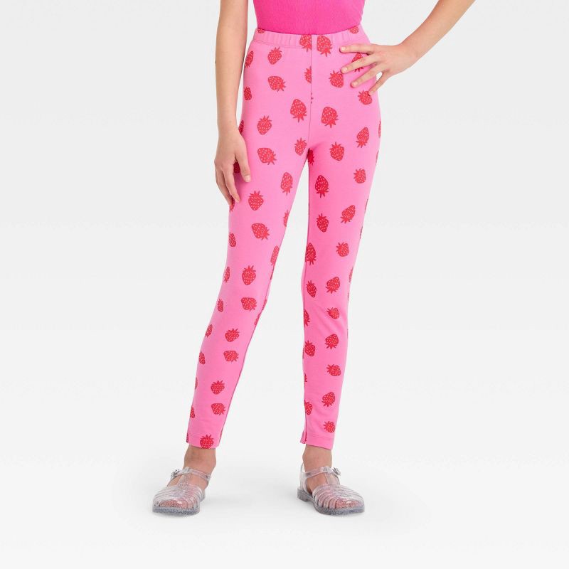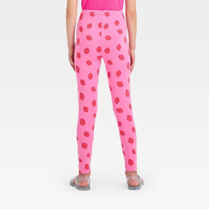 Add fruity fun to your kid's bottomwear collection with the Strawberry Leggings from Cat & Jack™. These pink leggings feature strawberries print for a pretty look that's perfect for everyday wear. Mad…