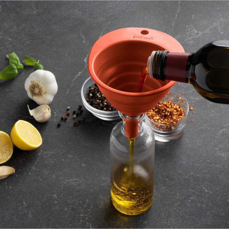 GoodCook Ready Collapsible Funnel: Foldable Kitchen Tool, Dishwasher-Safe, Orange/Red, Plastic, 8.5" Height