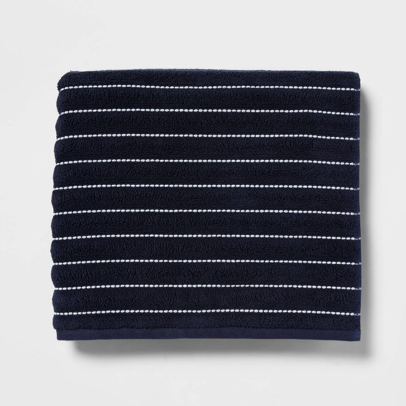 Performance Plus Bath Towel Navy Striped - Threshold™: Heavyweight Cotton Blend, Fade-Resistant, Quick-Dry