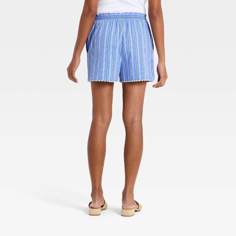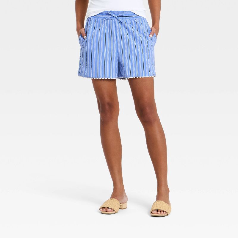 Women's Poplin Pull-On Shorts - A New Day™ Blue Striped S
