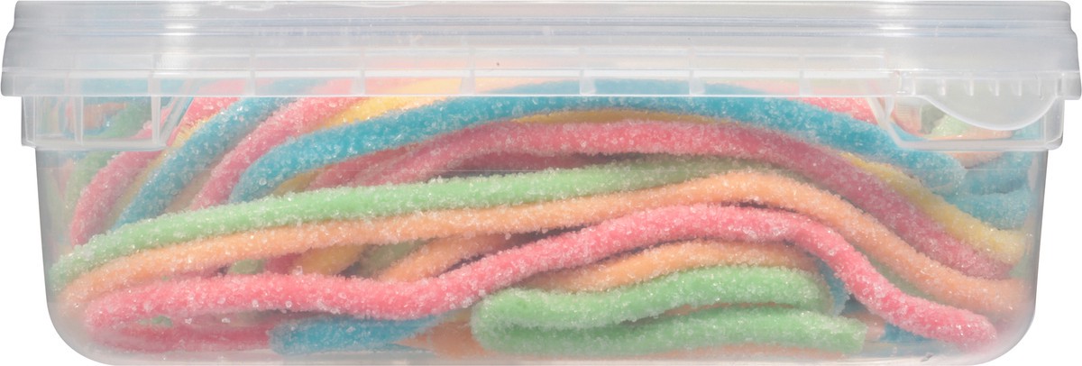 Sugar, Glucose Syrup, Wheat Flour, Vegetable Oil, Apple Juice (1.5%), Acidulant (Citric Acid, Malic Acid), Artificial Flavors, Monodiglyceride, Artificial Colors (Titanium Dioxide, Blue 1, Yellow 5, Y…