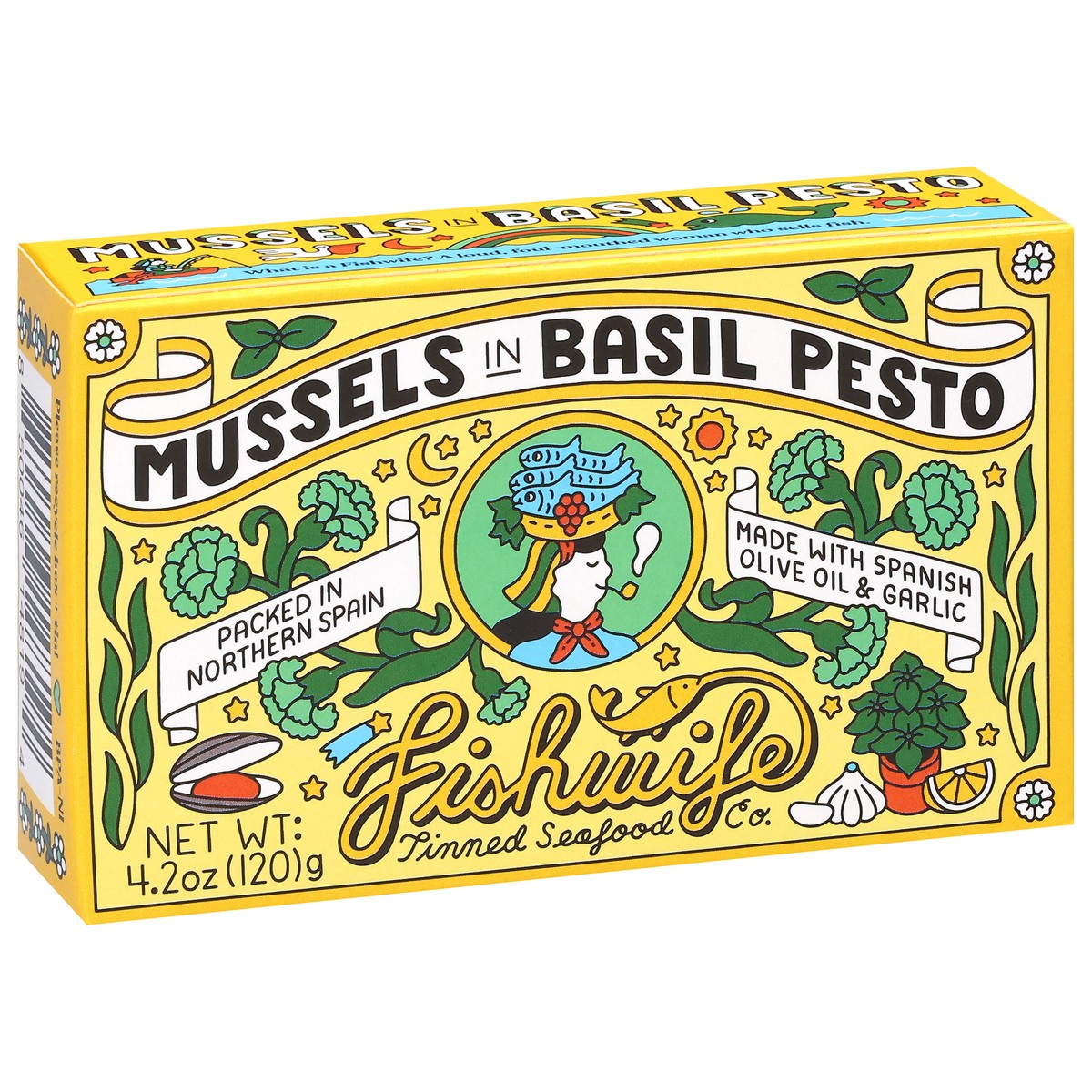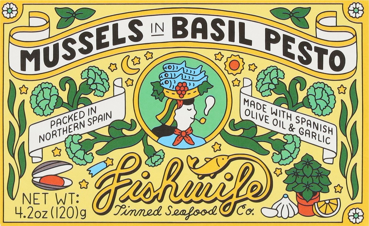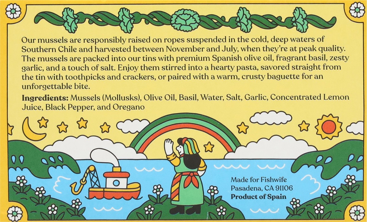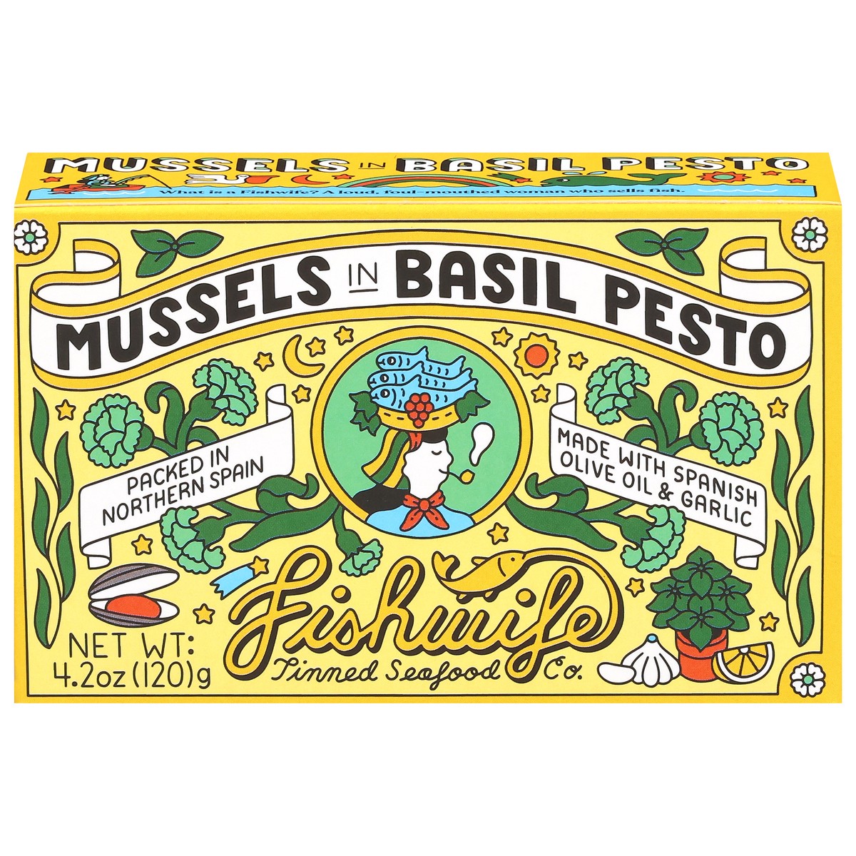 Mussels in basil pesto. What is a Fishwife? A loud, foul-mouthed woman who sells fish. Our mussels are responsibly raised on ropes suspended in the cold, deep waters of Southern Chile and harvested be…