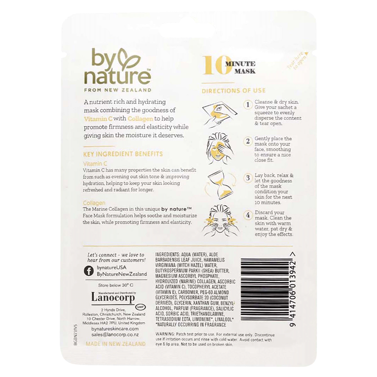 By Nature Vitamin C and Collagen Face Mask, 1 Application