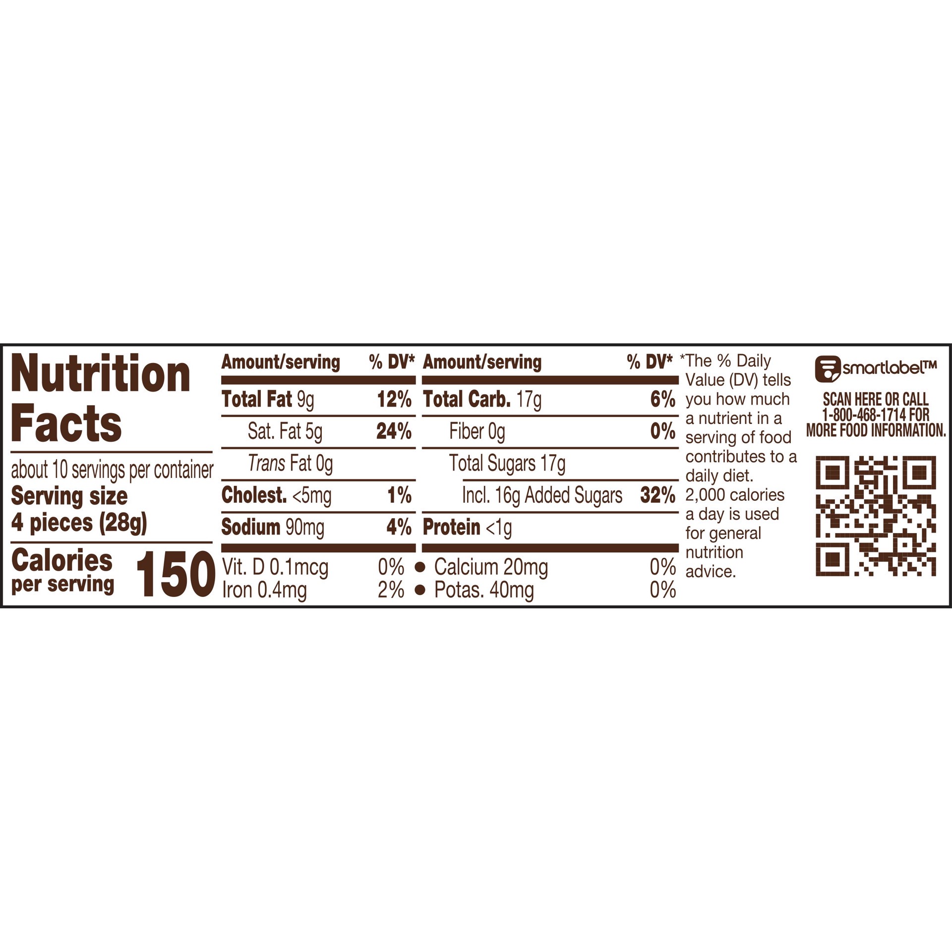 Milk Chocolate [Sugar, Cocoa Butter, Chocolate, Skim Milk, Milk Fat, Lactose, Salt, Lecithin (Soy) Natural Flavor], Sugar, Vegetable Oil [Palm Oil, Sunflower Oil], Dairy Butter (Milk), Almonds, Salt, …