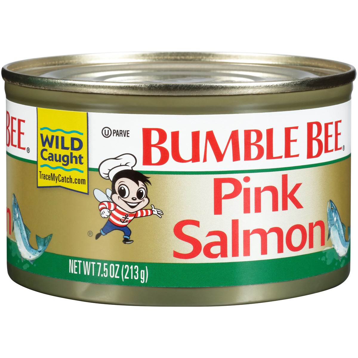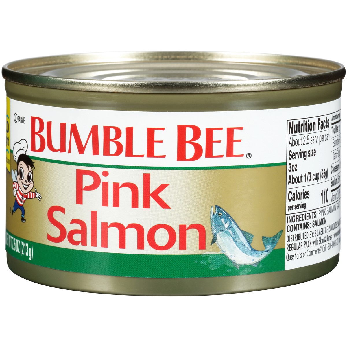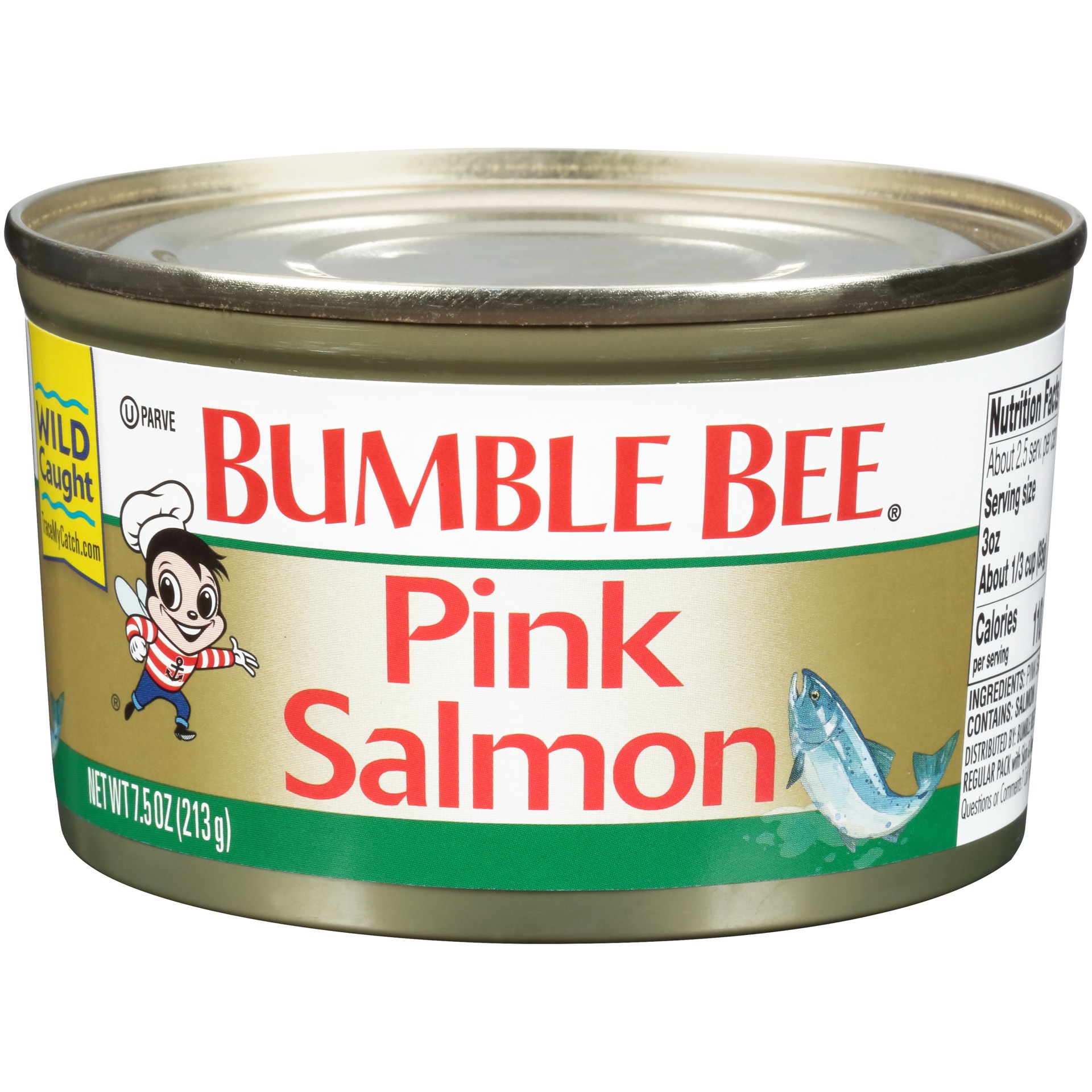 Gluten free. Regular pack with skin & bones. www.bumblebee.com. Questions or Comments? Call 1-800-800-8572. Include code on end of can. Wild caught. TraceMyCatch.com. 100% recyclable packaging.