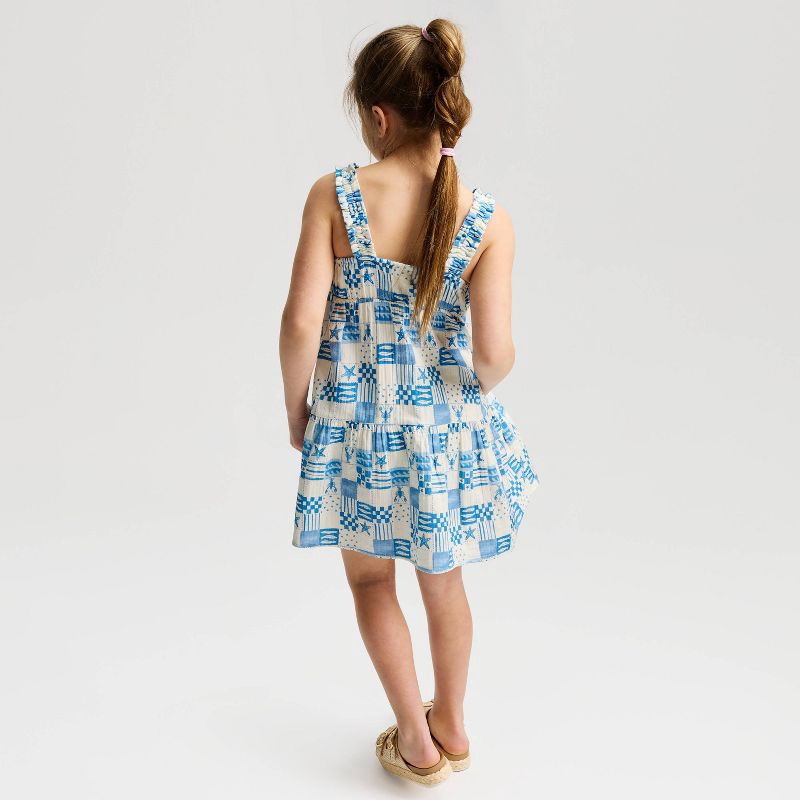 Your child will love showing their patriotic spirit in this 4th of July A-Line Dress from Cat & Jack™. Made from lightweight 100% cotton fabric with lining, this sleeveless gauze dress features an Ame…