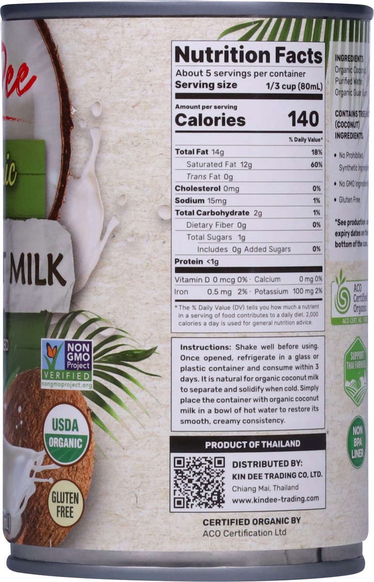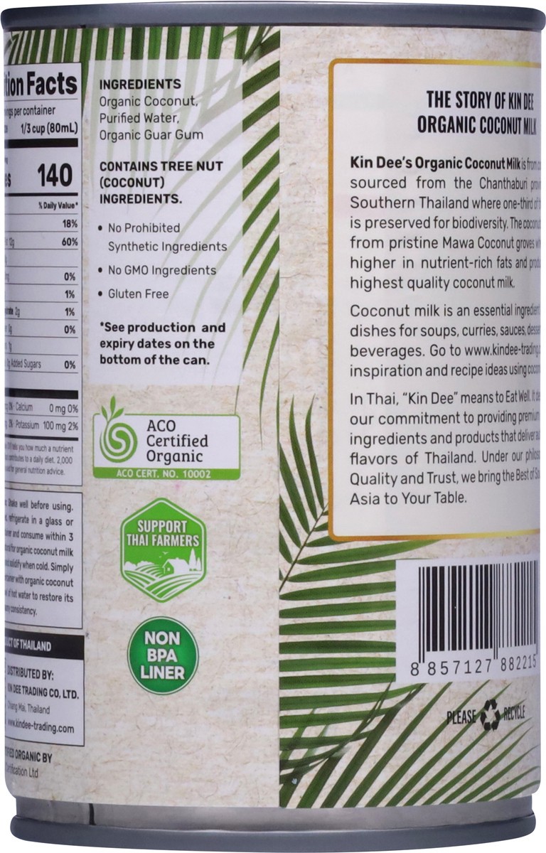 Kin Dee Organic Unsweetened Coconut Milk 13.5 fl oz