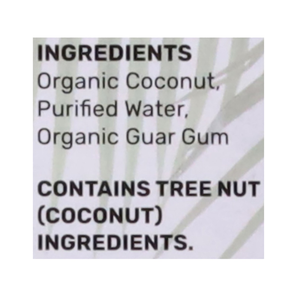 Organic Coconut, Purified Water, Organic Guar Gum.