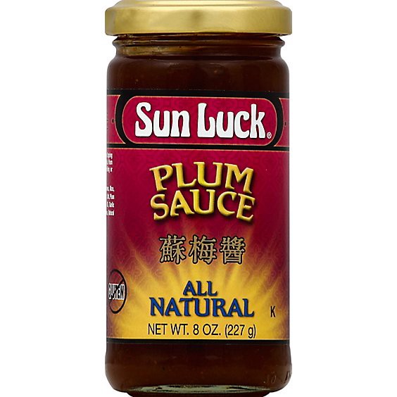 All natural, gluten free. Sun Luck Golden Plum Sauce is a delicious dipping sauce for roast duck, BBQ pork and egg rolls. Plum sauce can also be used as a glaze when broiling or roasting poultry and p…