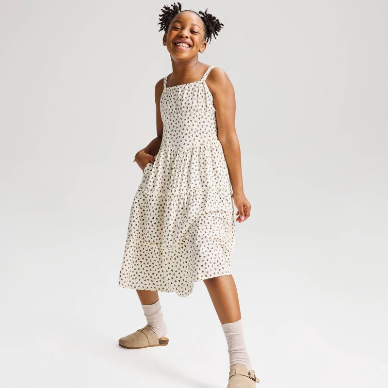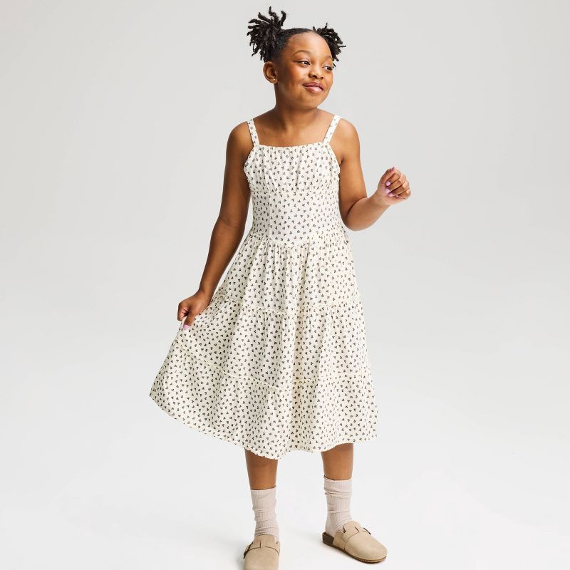 Girls' Floral Midi A-Line Dress - Cat & Jack™ Cream XL