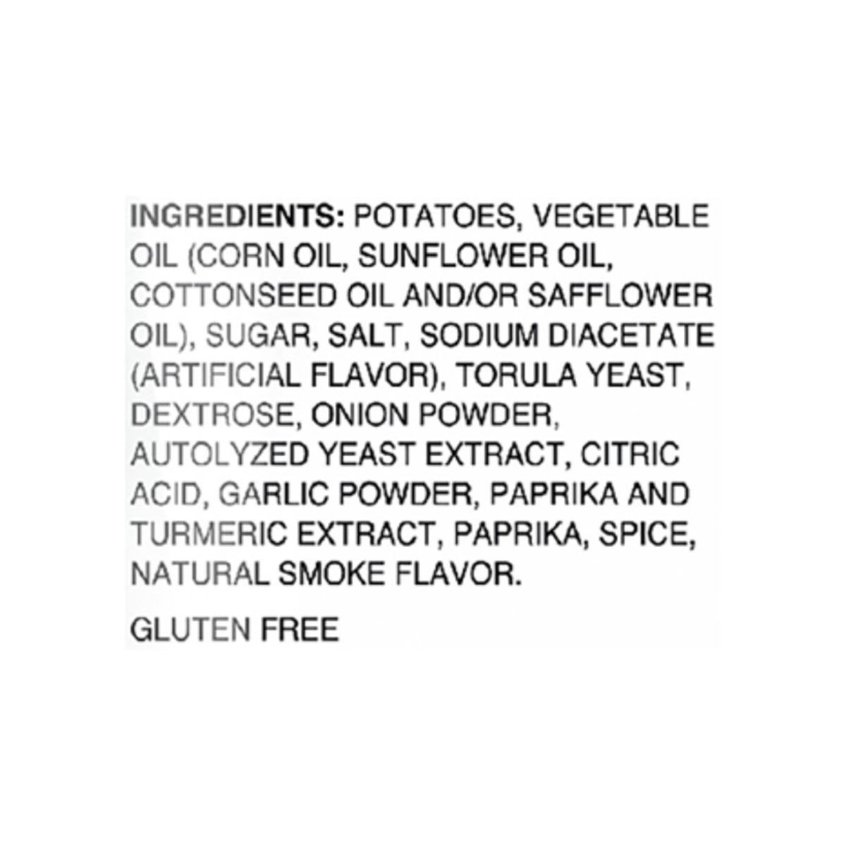 Potatoes, Vegetable Oil (Corn Oil, Sunflower Oil, Cottonseed Oil and/or Safflower Oil), Sugar, Salt, Sodium Diacetate (Artificial Flavor), Torula Yeast, Dextrose, Onion Powder, Autolyzed Yeast Extract…