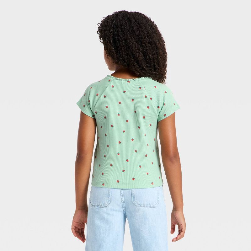 Girls' Short Sleeve Fitted Ribbed Strawberry T-Shirt - Cat & Jack™ Dusty Mint Green M