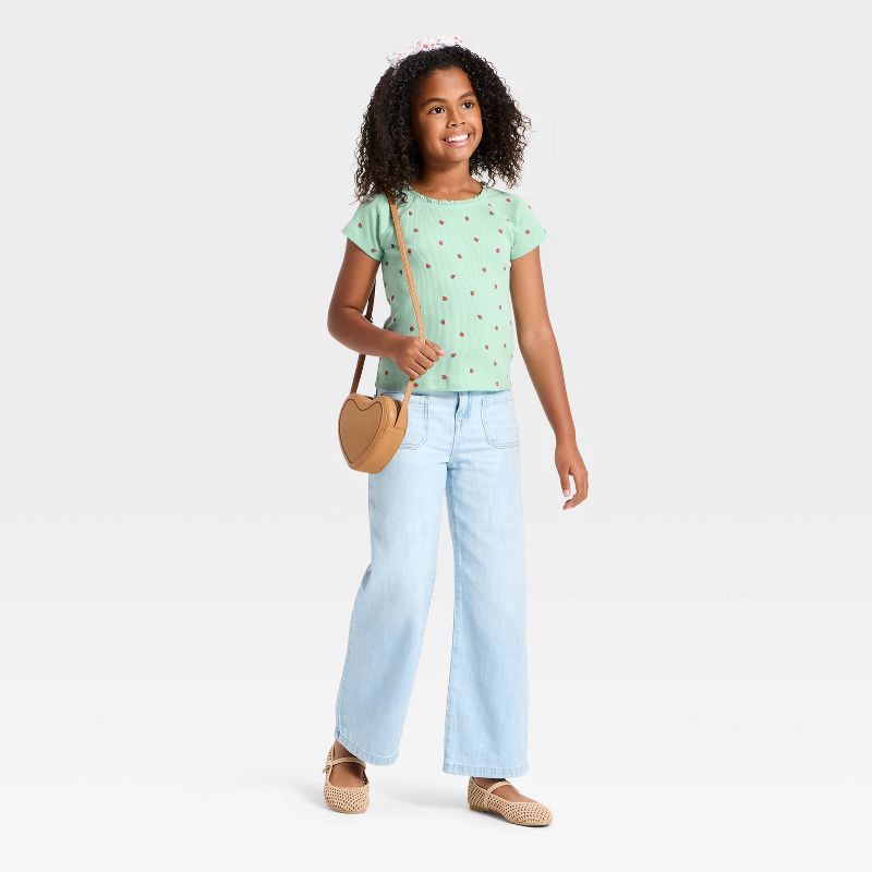 Add charming style to your kid's wardrobe with this Short-Sleeve Fitted Ribbed T-Shirt from Cat & Jack™. This ribbed T-shirt is made from a midweight cotton-polyester-spandex blend for all-day comfort…