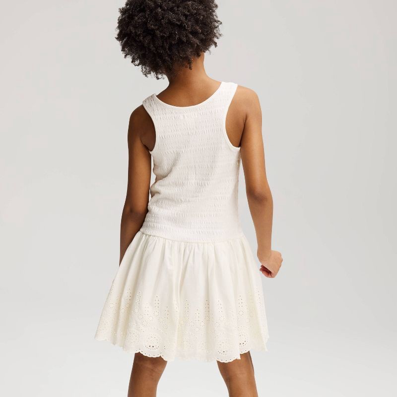 Girls' Drop Waist Eyelet Bubble Hem Dress - Cat & Jack™ Cream XL