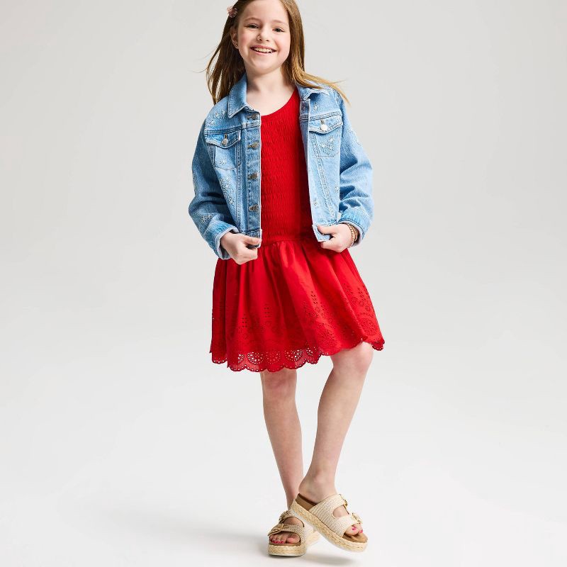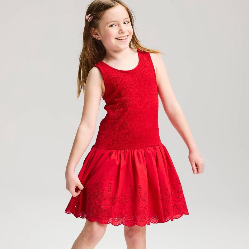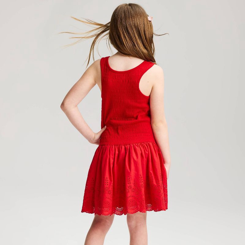 Girls' Drop Waist Eyelet Bubble Hem Dress - Cat & Jack™ Red XL