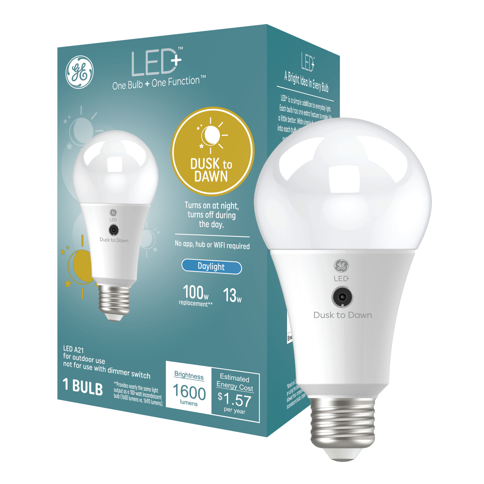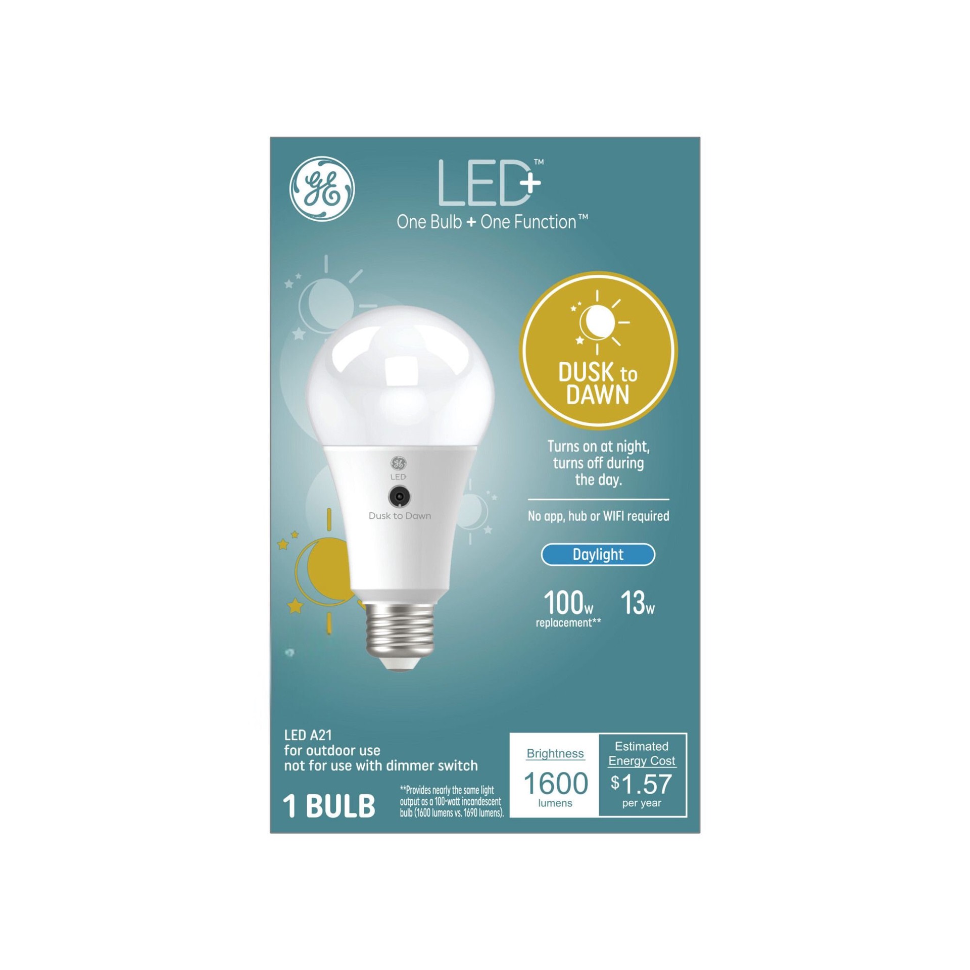 GE LED+ Dusk to Dawn 100 -Watt EQ A21 Daylight Medium screw base E26 LED General purpose Light Bulb