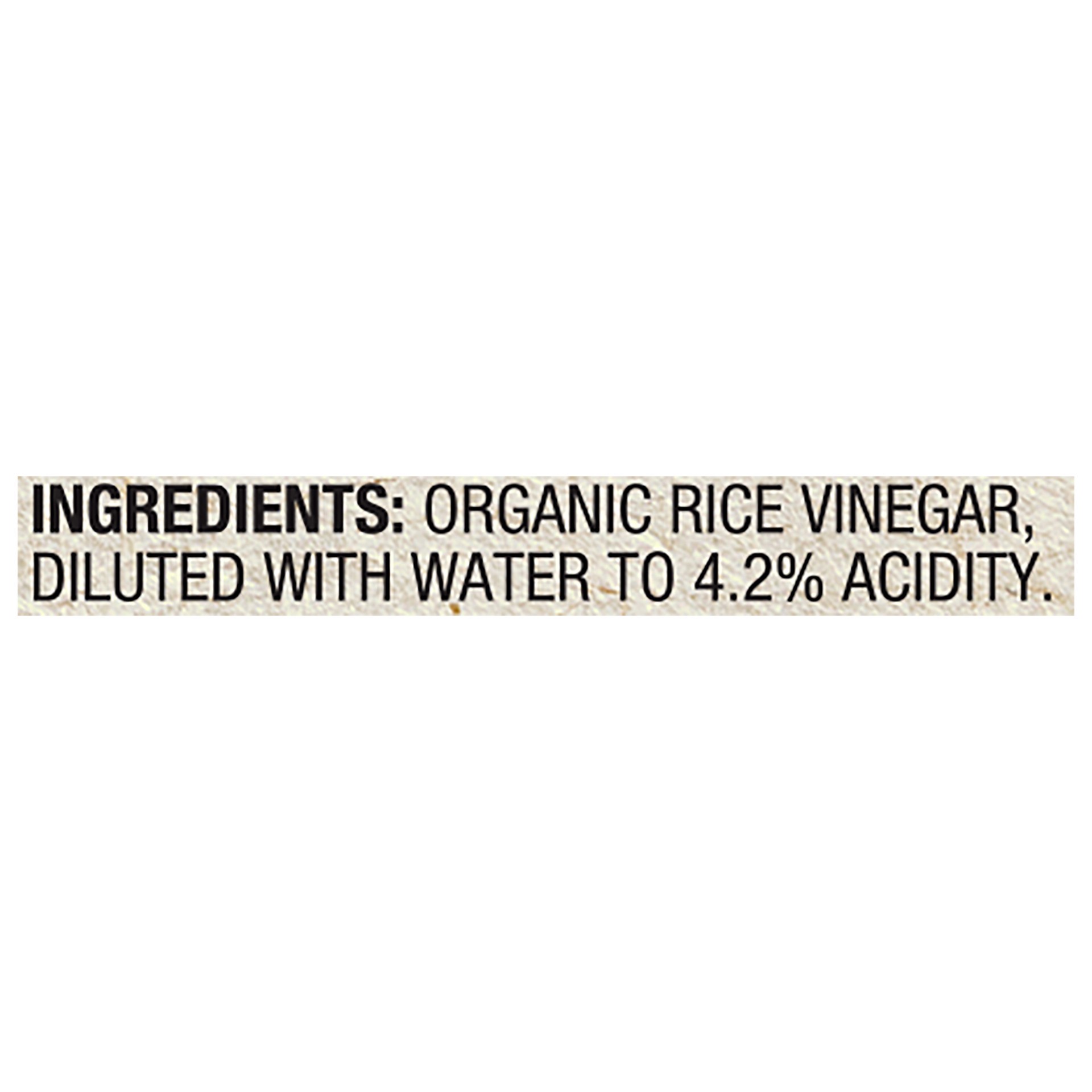 Organic Rice Vinegar, Diluted with Water to 4.2% Acidity.