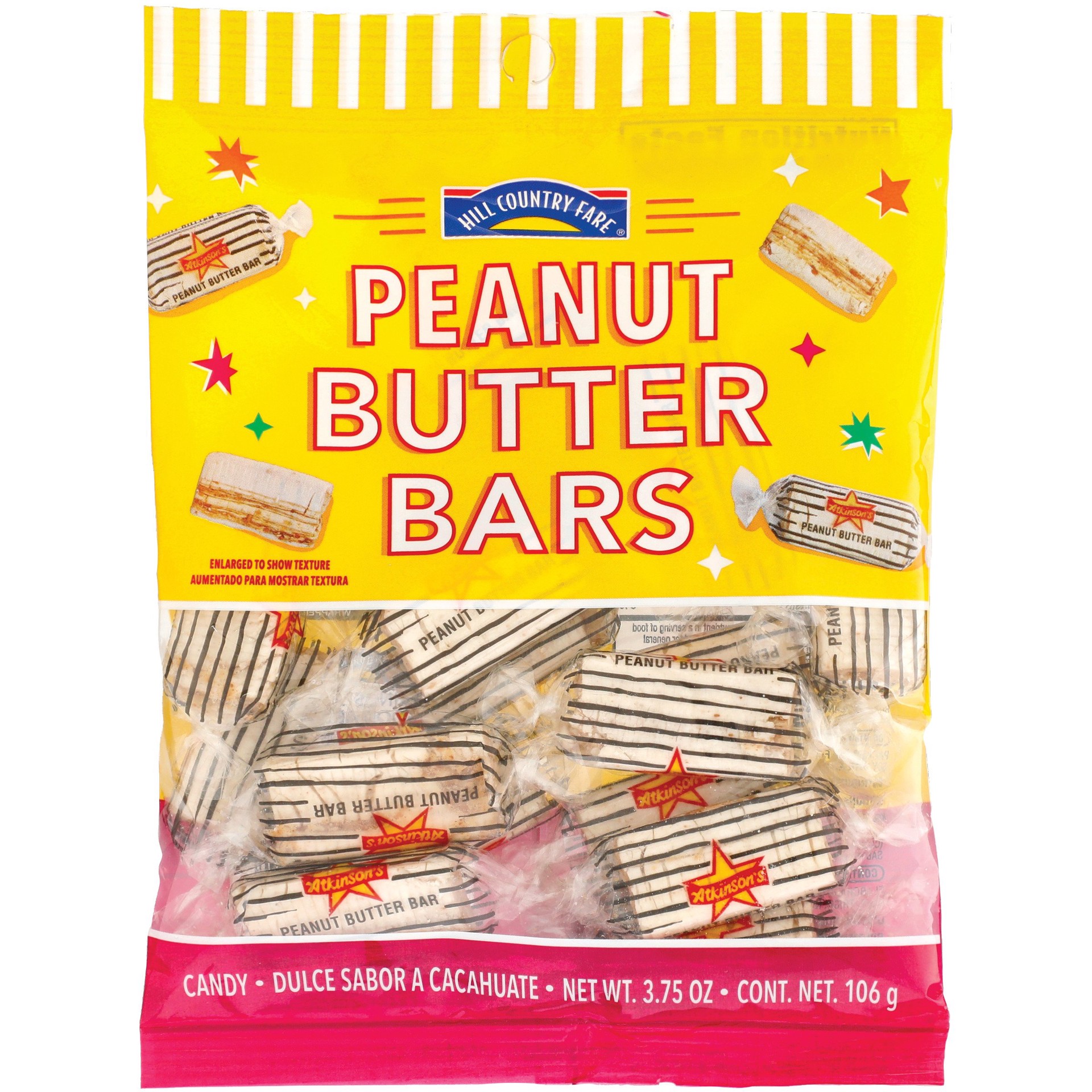 Made with natural vanilla flavor and peanut butter, our Hill Country Fare Peanut Butter bars have the perfect balance of sweet and salty flavors. Individually wrapped, these crunchy candies are nostal…