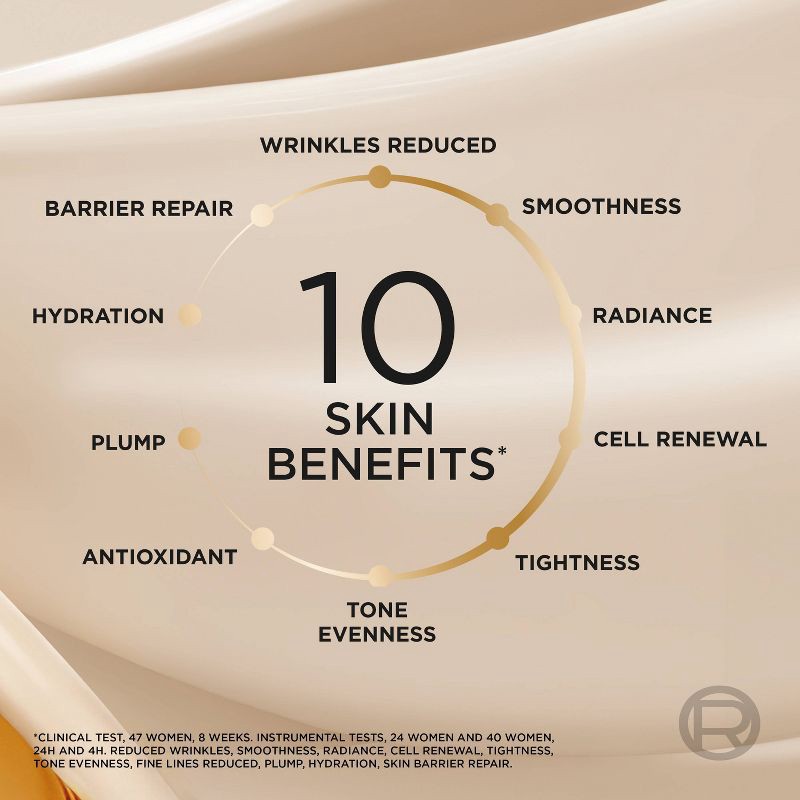 - Fights 10 Signs of Aging: See results on firmness, radiance, tone evenness, plumpness, and a reduction in fine lines.